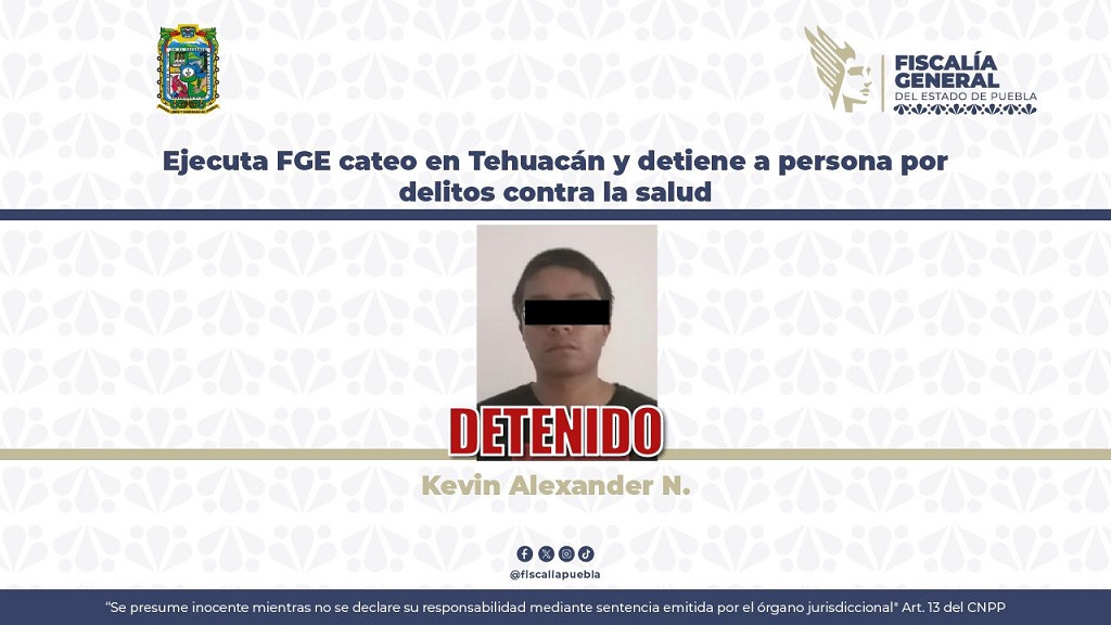 EJECUTA FGE CATEO EN TEHUACÁN Y DETIENE A PERSONA POR DELITOS CONTRA LA SALUD