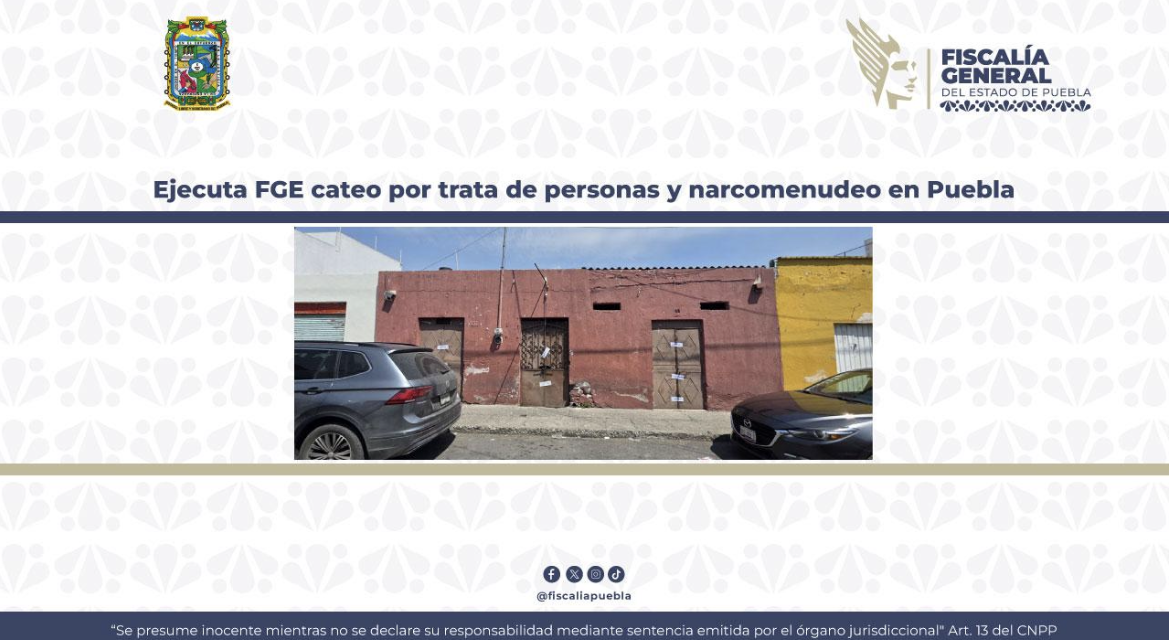 Como resultado de actos de investigación, la Fiscalía General del Estado de Puebla (FGE), a través de la Fiscalía Especializada en Investigación de Delitos de Violencia de Género contra las Mujeres, ejecutó un cateo por los delitos de trata de personas en su modalidad de explotación sexual y delitos contra la salud, en el municipio de Puebla.