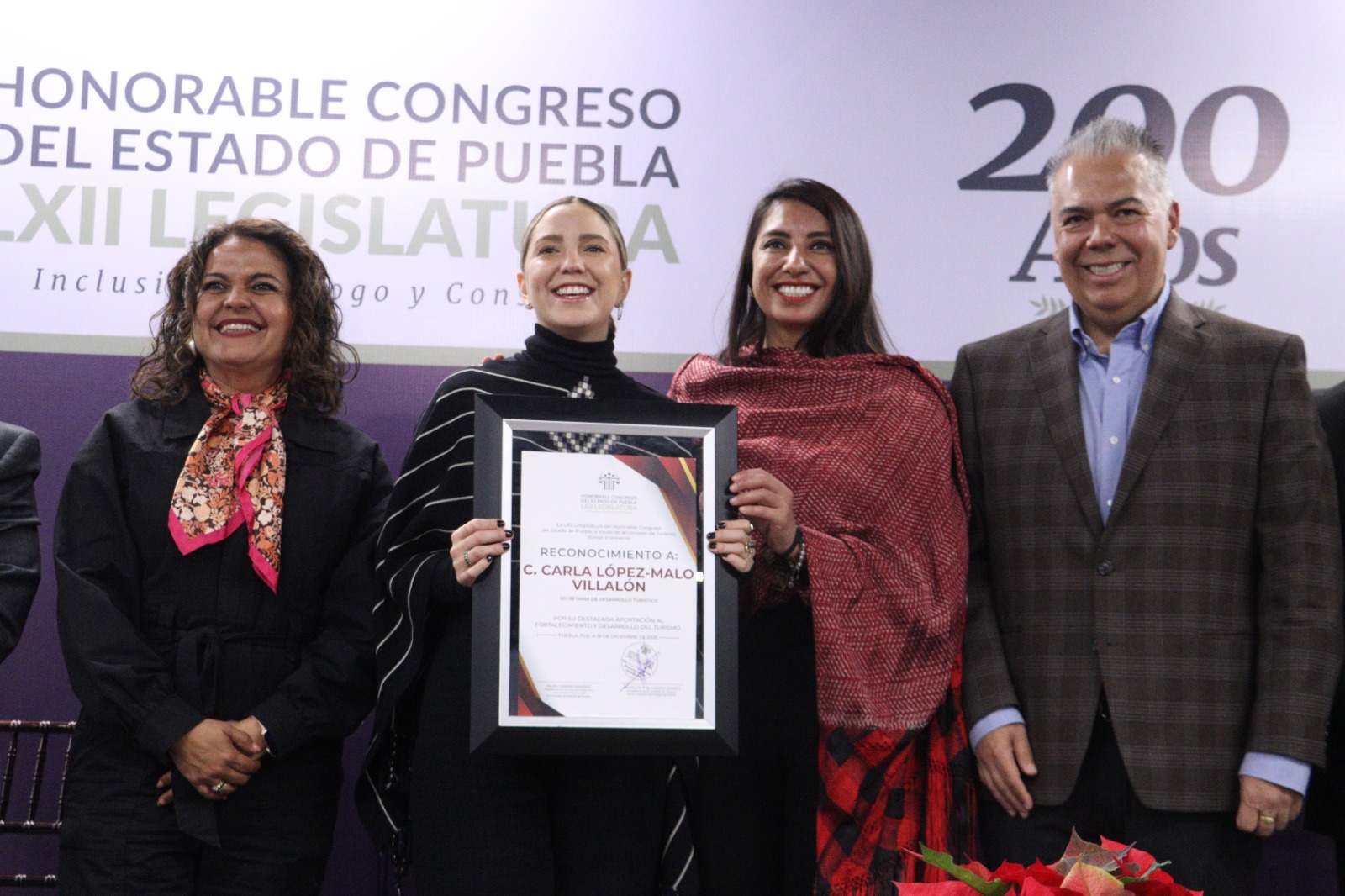Durante esta entrega, la diputada Angélica Alvarado Juárez, presidenta de la Comisión de Turismo de la LXII Legislatura, señaló que el Poder Legislativo reconoce el trabajo que realizan mujeres, hombres y las juventudes poblanas en pro de la cultura y el turismo en la entidad.