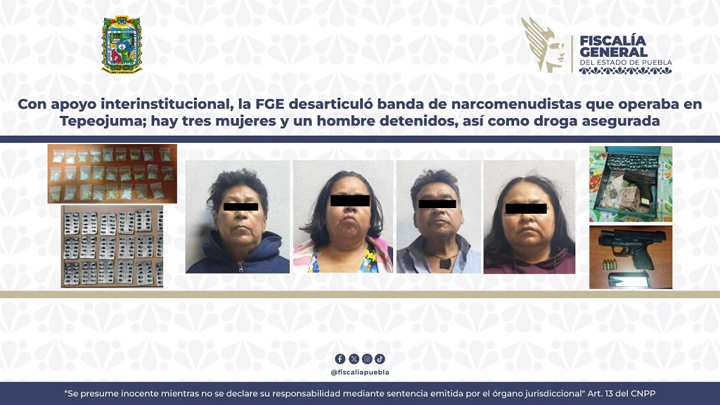 Mediante un operativo interinstitucional encabezado por la Fiscalía General del Estado (FGE) se logró desarticular a una banda dedicada al narcomenudeo que operaba en el municipio de Tepeojuma.