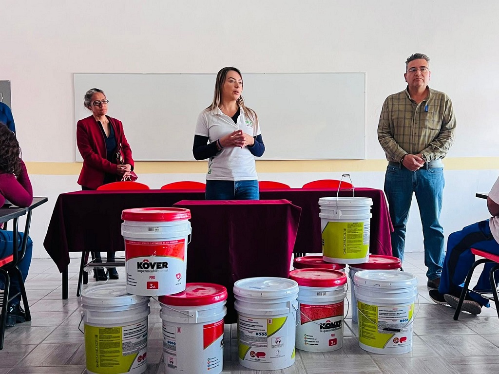 Como parte de su labor de gestión social, María de la Barreda acudió a la Primaria Vespertina Pacheco y Henning, donde realizó la entrega de botes de pintura e impermeabilizante, contribuyendo así a la mejora de las instalaciones educativas en beneficio de la comunidad estudiantil.