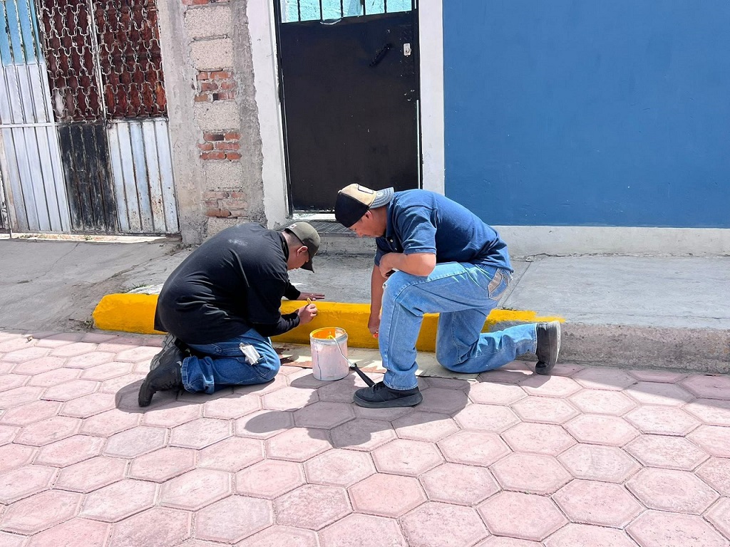 Asimismo, visitó la calle Puebla, en la colonia Francisco Villa, donde, en conjunto con las y los vecinos, llevó a cabo trabajos de pintura de guarniciones, con lo que dio cumplimiento a uno de los compromisos adquiridos previamente.