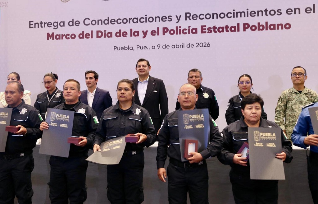 En el marco del Día de la y el Policía Estatal Poblano, el Gobierno del Estado distinguió a elementos con 30, 35 y 40 años de servicio, en reconocimiento a su vocación, disciplina y lealtad. El titular del Ejecutivo señaló que el trabajo policial es fundamental para garantizar la convivencia armónica, el respeto a la ley y la tranquilidad social en todo el territorio poblano.