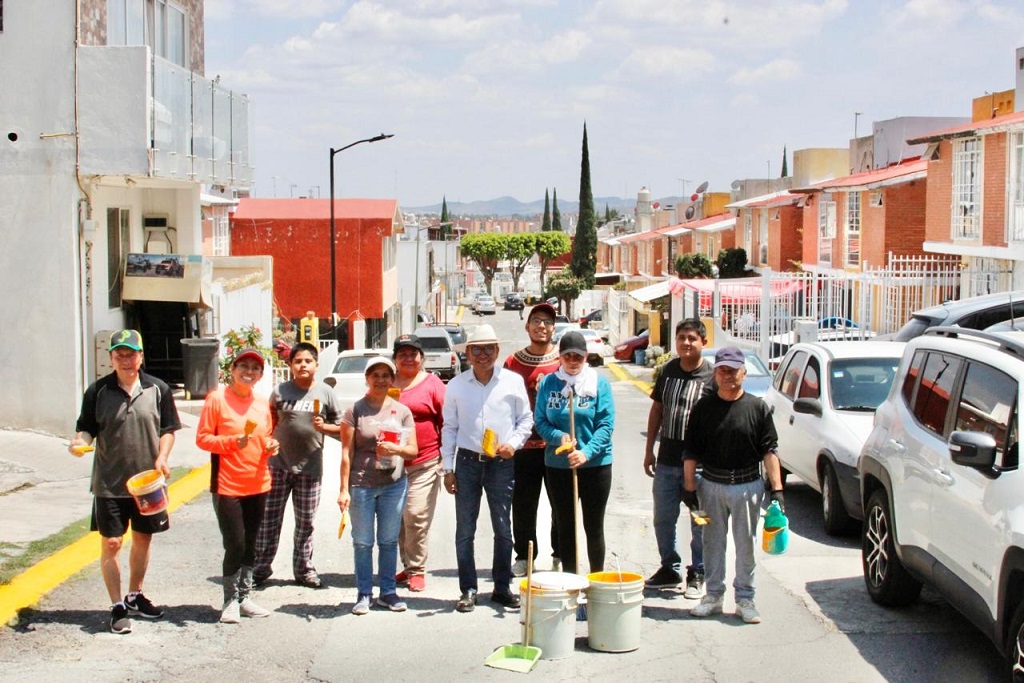 Derivado de la coordinación y gestión de Figueroa Cortés, niñas, niños, mujeres y hombres se sumaron a estas acciones comunitarias y realizaron labores de pintura en guarniciones y mejoramiento del entorno urbano.