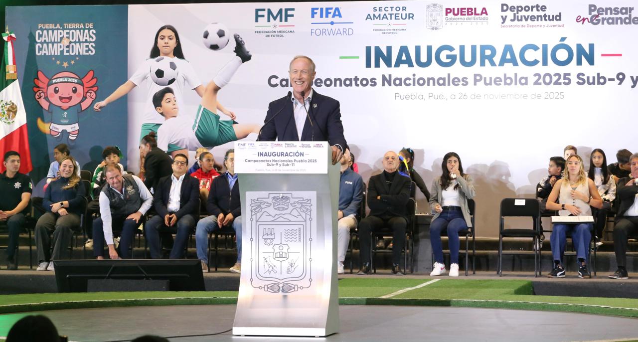CIUDAD DE PUEBLA, Pue.- La inauguración de los Campeonatos Nacionales Puebla 2025 Sub 9 y Sub 11 reunió a miles de familias y a delegaciones de los 32 estados del país en un arranque que destacó por su organización, su mensaje de unidad y el impulso estratégico que el Gobierno de Puebla, encabezado por Alejandro Armenta, ha dado al deporte como política pública desde el inicio de esta administración.
