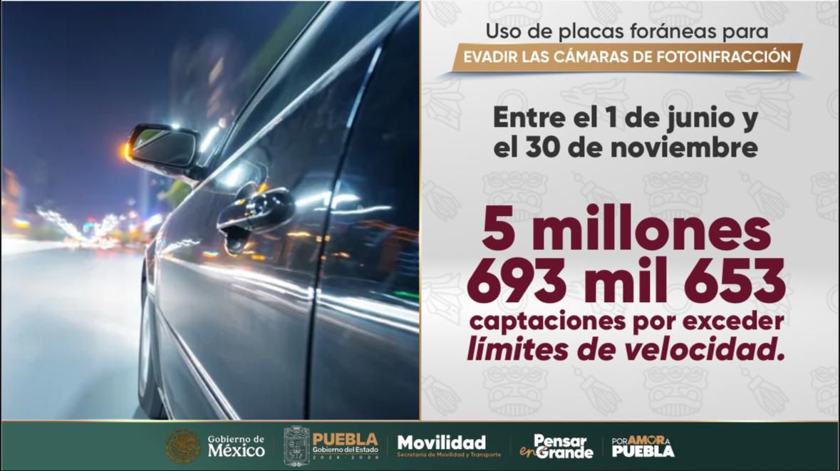 CIUDAD DE PUEBLA, Pue.- Operativo Monitor Vial para sancionar a placas foráneas, pone en marcha el Gobernador del Estado, Alejandro Armenta, ante más de 5 millones de capacitaciones de vehículos que transitan a exceso de velocidad, de los cuales, más de 4 millones corresponden a matrículas de otro estado.