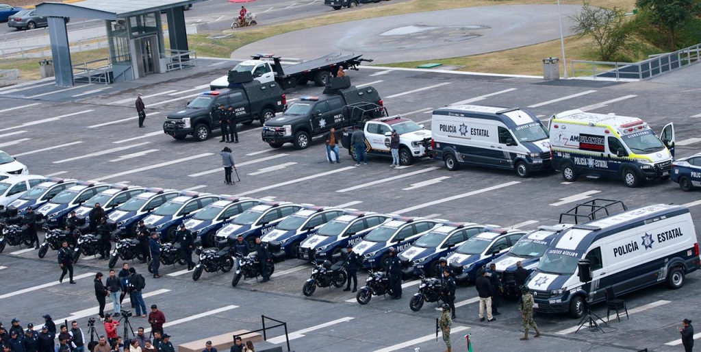 - El gobernador encabezó la entrega de 111 unidades, entre motocicletas, patrullas, ambulancias y helicópteros por un monto de 57 mdp.